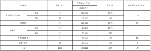 公开资料显示,中百集团旗下拥有综合超市(中百仓储)、社区超市(中百超市)、便利店(中百罗森)、百货店(中百百货)、电器专卖店(中百工贸电器)以及小型购物中心等多种业态,是以商业零售为主业的大型连锁企业,拥有分布在湖北、重庆、湖南三地的连锁网点1700余家。
