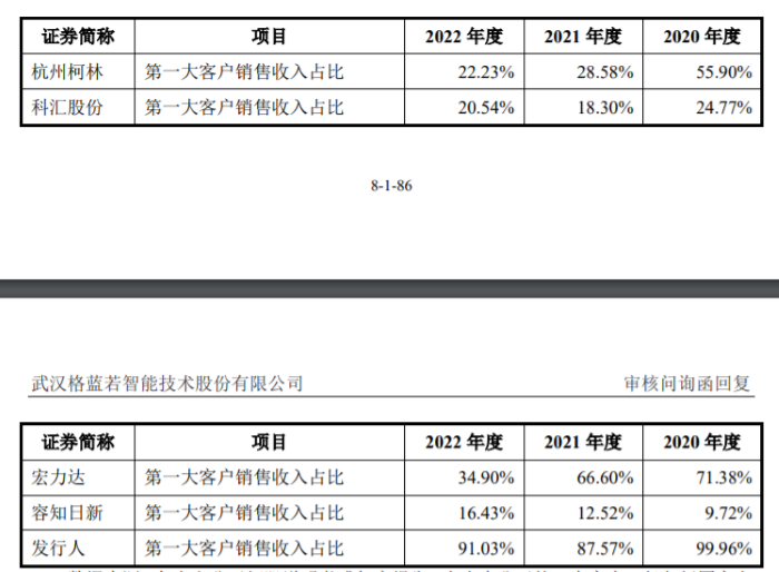 格蓝若在最新回复中表示,公司在主要产品类型、主要客户类型或客户涉及行业方面与同行业可比上市公司存在较大差异,同行业可比公司主要产品类型相对丰富,主要客户涉及较多行业或较多客户类型,而公司产品较为单一,客户以国家电网系统内公司为主。