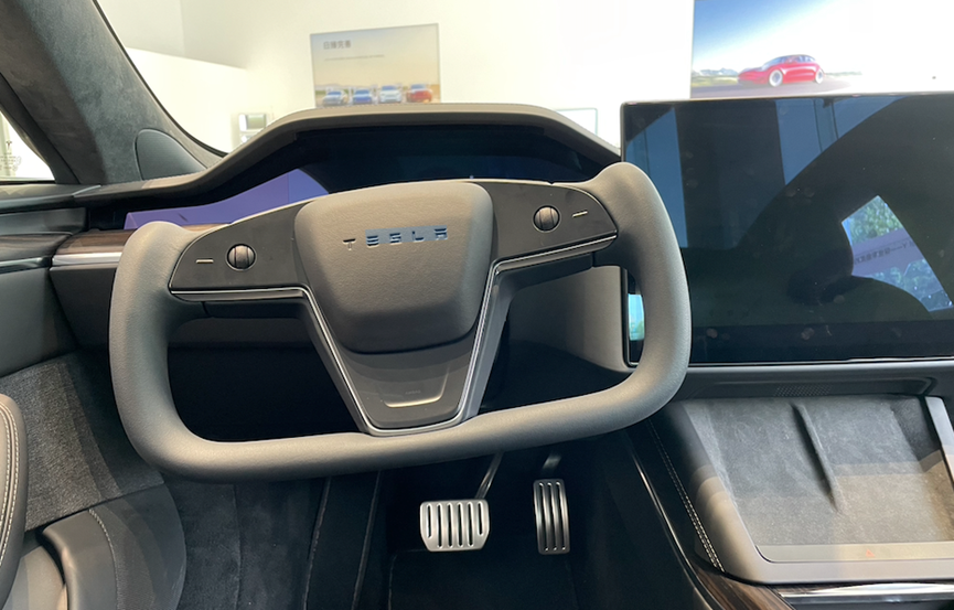 这种设计,在新款Model S/X上已经实现了。这本来是为迎合Yoke方向盘而做的设计:当左手搭在轭形方向盘左下角时,正好卡在直角拐弯处,左手拇指可以很自然的触碰到左右方向键,习惯后还算方便。