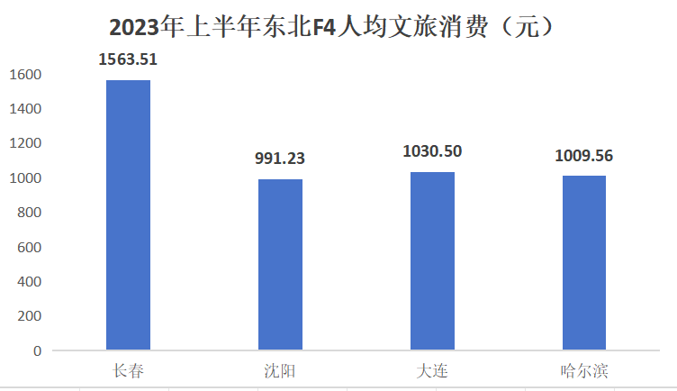 人均文旅消费持续走高。2023年上半年,东北F4人均文旅消费分别是: