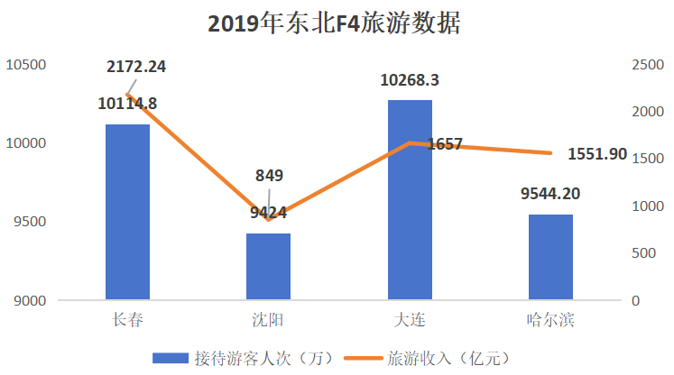 在国内旅游总收入方面,沈阳、大连和哈尔滨均保持在500亿规模,长春则以900亿+的规模,稳居东北F4之首。