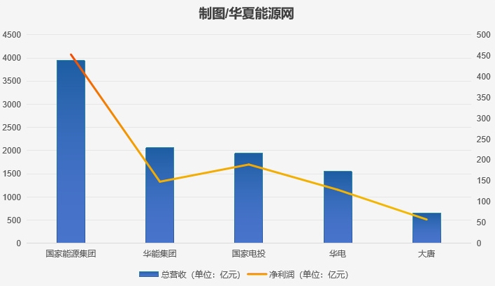 已公布的财务数据显示,2023年上半年,五大集团共计实现总营收10111.51亿元,其中,国家能源集团3942.22亿元、华能集团2063.52亿元、国家电投1904.80亿元、华电1549.02亿元、大唐651.95亿元。