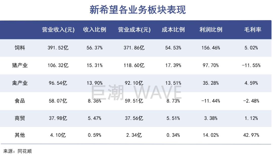 要知道,饲料在成本占比中能达到60%以上,是绝对的大头。新希望作为全国最大的饲料企业,加上乳业、食品、金融等多元协同作战,其养殖成本本应更有优势。