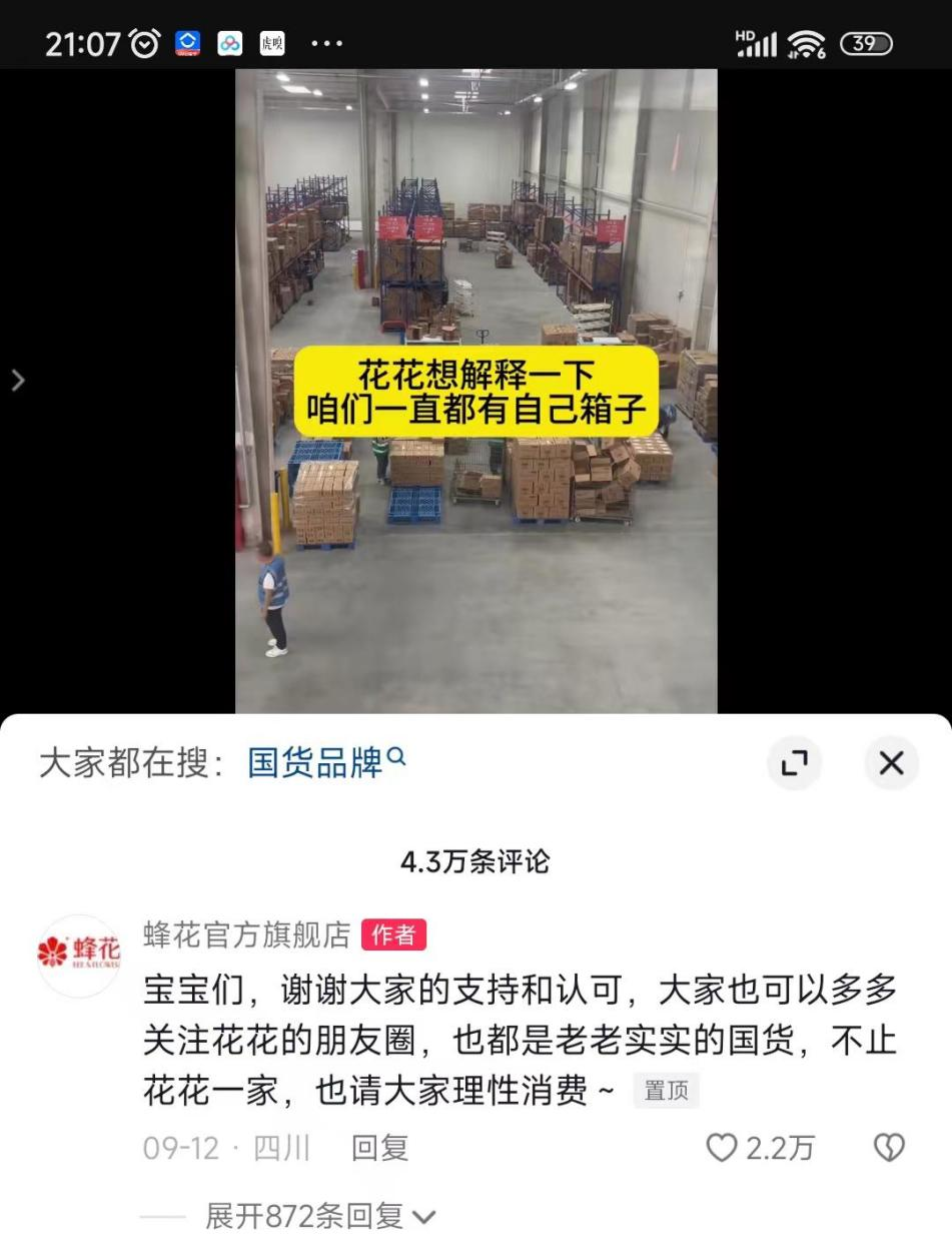 本是一件好事,然而事件至此却峰回路转。蜂花官微在当晚后发文澄清,直指所谓“蜂花老板”是自媒体造谣,借此销售假冒产品。有部分网友则当即质疑蜂花,此举是“自导自演,营销卖惨”。