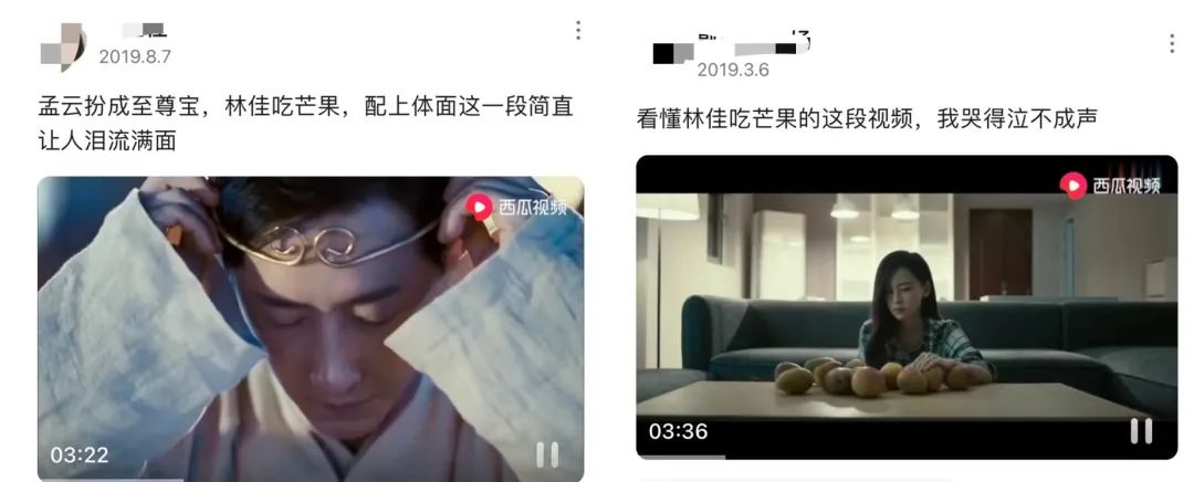 《前任3》的“至尊宝”、“吃芒果”高浓度情绪情节在抖音上快速走红,成为经典场景。同时,片中《说散就散》《体面》两首歌流行性强,歌词应和电影主题,很快成为短视频热门BGM。