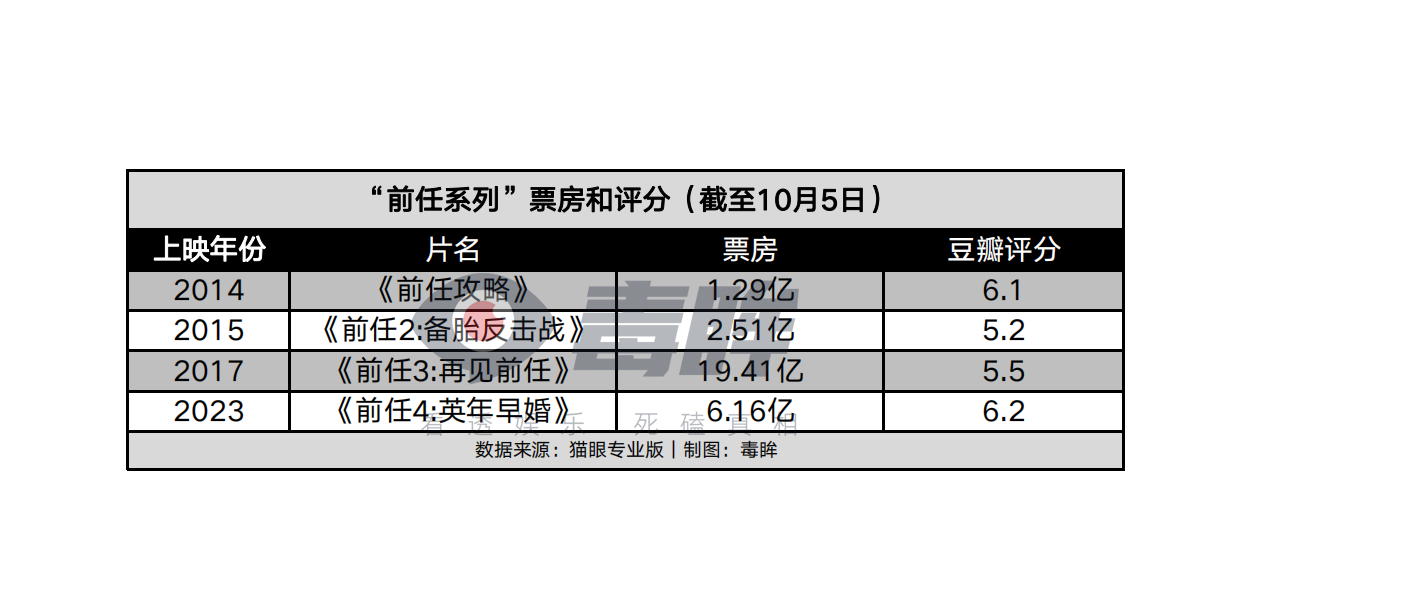 《前任4》释出预告时,一条观众留言写道,“前任这个系列,是个好商品,但不一定是好电影。”