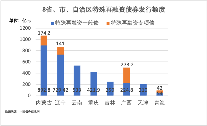 9月26日,内蒙古自治区公告拟发行660亿元再融资债券用于偿还存量债务,成为自7月中央政治局会议提出“制定实施一揽子化债方案”以来首个重启特殊再融资债券发行的省份。随后,天津、辽宁、重庆、云南、广西、青海、吉林也相继发布公告。
