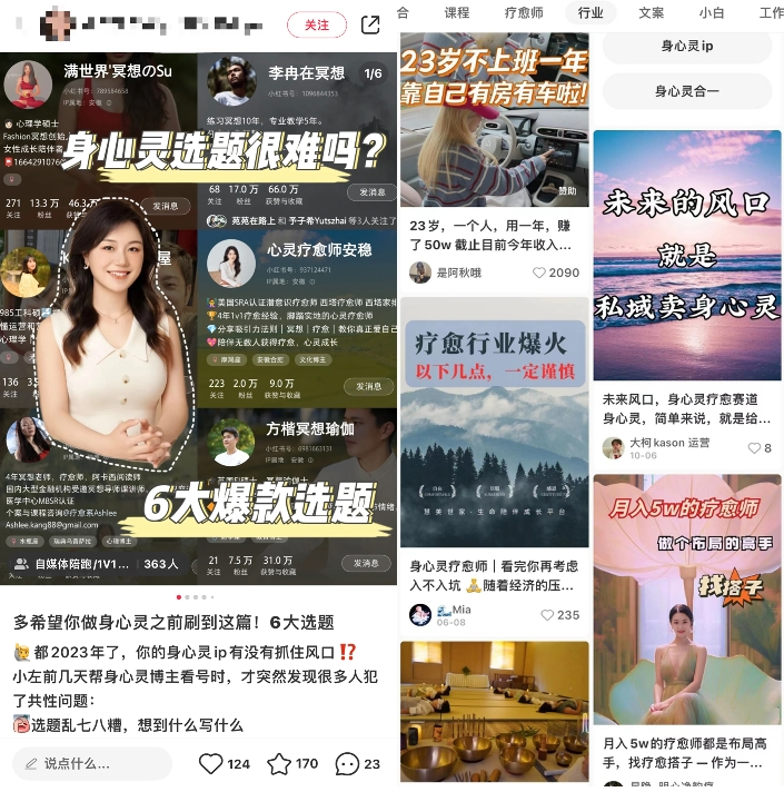 在小红书里搜索身心灵,你会发现这个圈子里已经形成了一条庞大的产业链。
