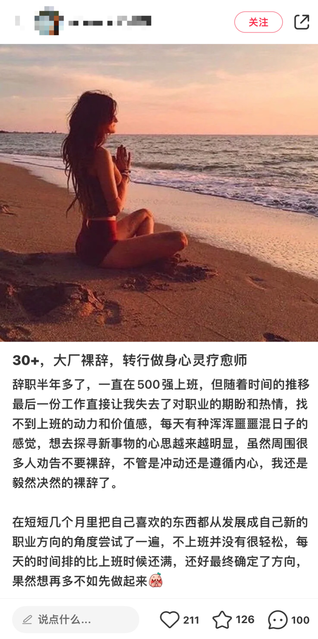 裸辞的大厂人,又有了新去处,这一次是身心灵。