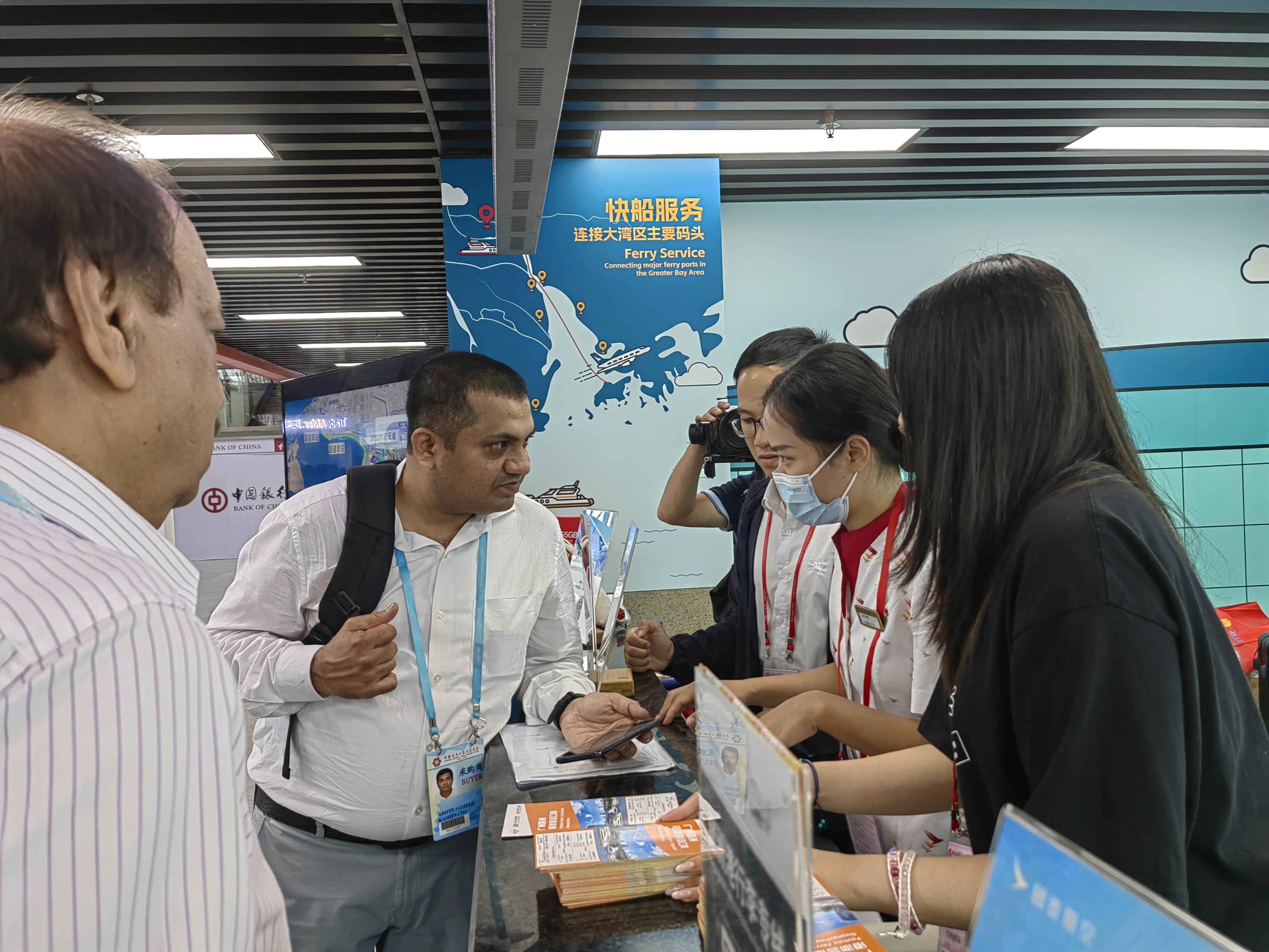印度采购商Saraf下一站将前往菲律宾,他在会场柜台办理了登记手续。他告诉记者,疫情前他主要通过南沙港前往香港海天客运码头,或者搭乘火车去香港再前往机场。琶洲港最大的优势在于毗邻广交会展馆,相比之下,去往南沙港的车程超过1个小时;不算路上车程,通过铁路抵达香港车站也需要1个小时。