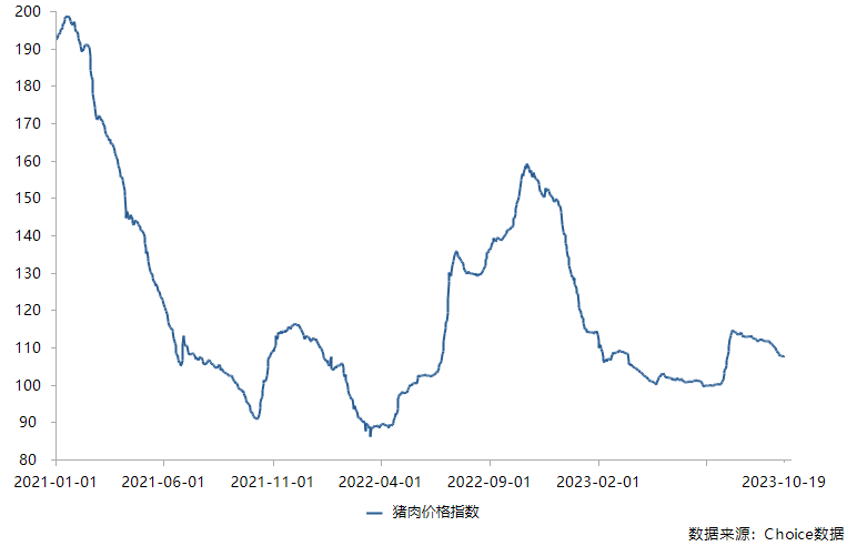 今年三季度,猪价延续低迷走势。iChoice数据显示,2022年下半年猪肉价格指数创阶段性新高后持续走低,尽管今年三季度有所回暖,但仍处于低位。