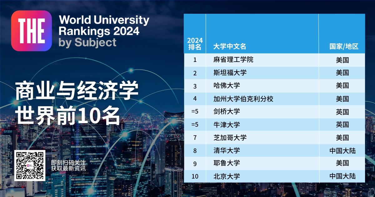 五年前,在商业和经济学科的排名中,仅有美国和英国的大学进入世界前十名。而今年有两所中国高校进入世界前十,分别为清华大学和北京大学。