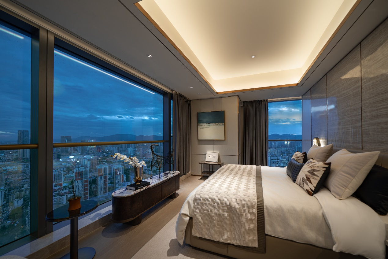 与发布会同步亮相的还有昆明君悦居奢装样板间,覆盖了一房、两房及三房不同户型。样板间均以现代简约风格打造,兼具高端酒店的舒适感与私人住所的居家感,体现了对艺术设计的追求和各色生活方式的尊重,独一无二的高空景观更令所有人印象深刻。