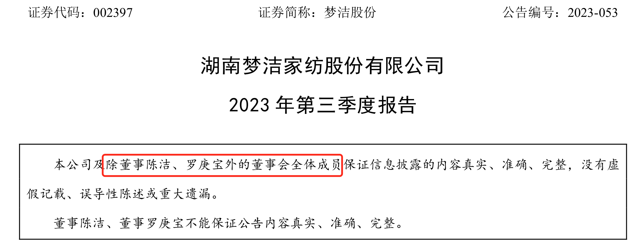 梦洁股份(002397.SZ)董事对三季报“不保真”。