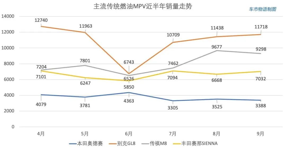主流传统燃油MPV别克GL8保持月均万台(车市物语制表)