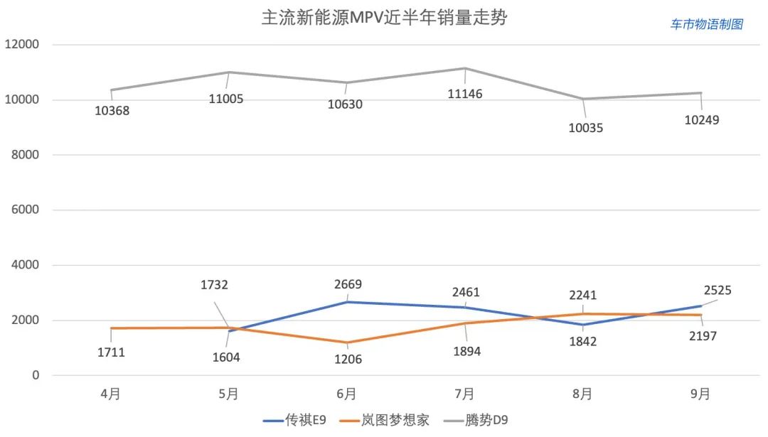 主流新能源MPV腾势D9实现月均万台(车市物语制表)