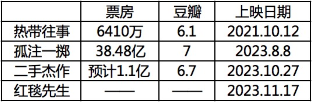 如果非得说一个转折点,那么《热带往事》算是一个比较特殊的节点。导演温仕培并没有专注于打造一部商业片,是完全属于偏作者向的影片,不论是影像还是故事剧情,都有着跟传统商业片相悖的地方。尽管拥有宁浩这个金字招牌作为加持,但依然无法摆脱失利的命运,最终票房仅有区区6000多万而已。