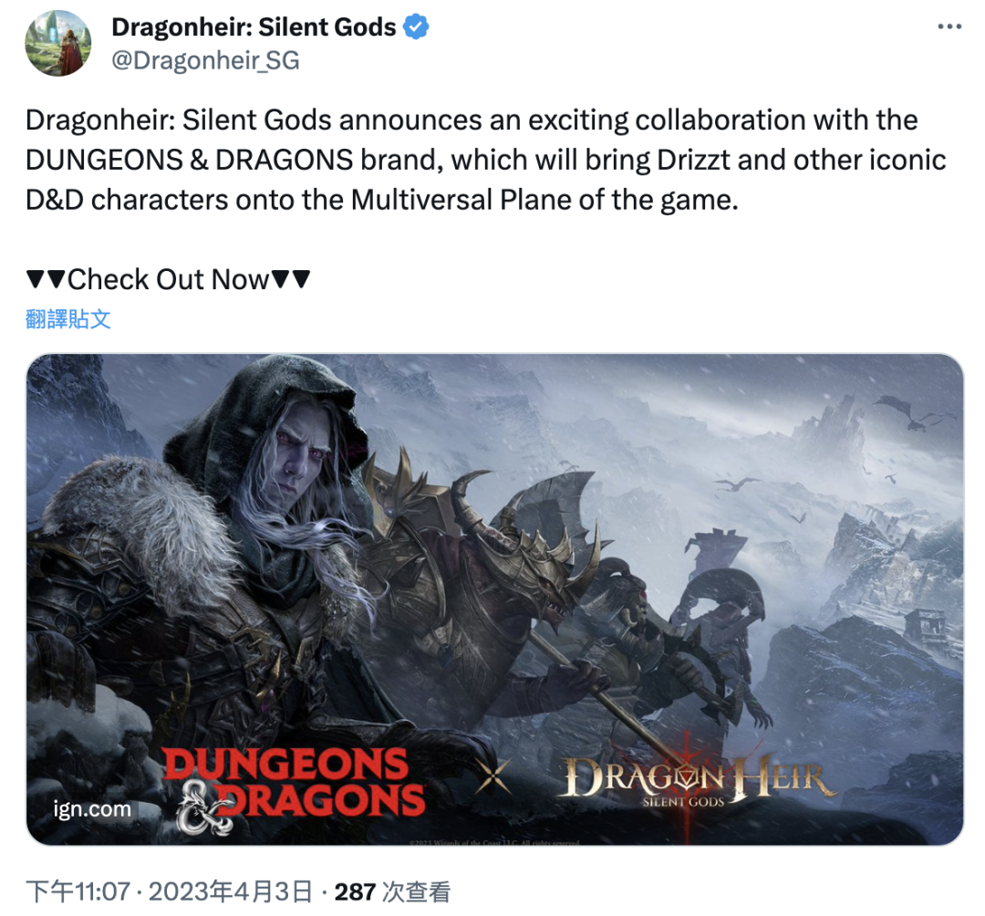 值得注意的是,《Dragonheir: Silent Gods》在上线期,并没有发布“上线领取xxx连抽”、“上线就送x英雄”等内容。而是在上线前5个月,就宣布与原版DnD进行联动。