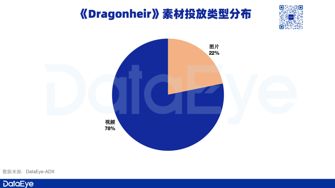 从投放素材类型来看,《Dragonheir: Silent Gods》图片素材占比仅有22%。项目组更侧重使用视频素材进行投放。