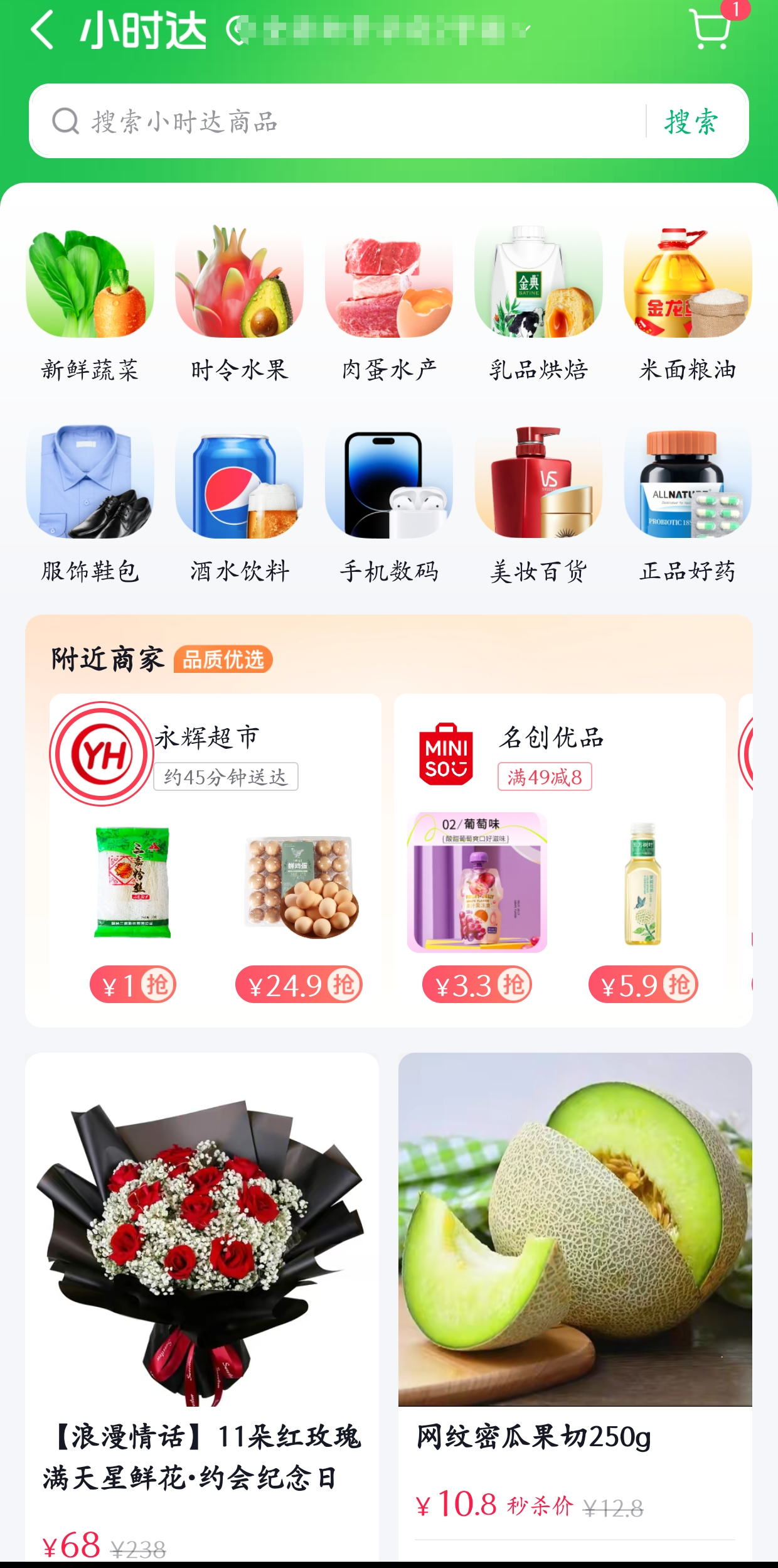 抖音小时达页面,目前合作方多为大型商超,图/抖音APP