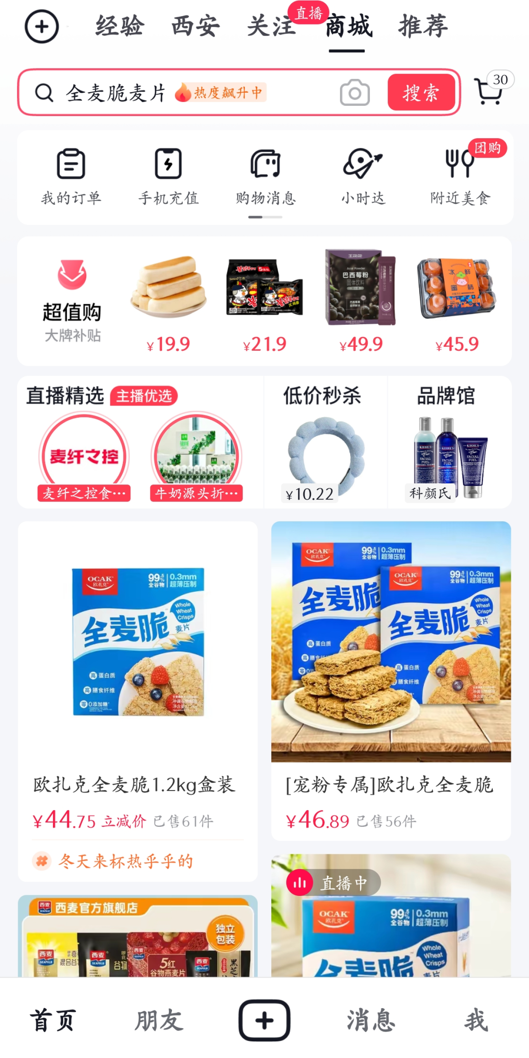 抖音商城页面,美食团购、电商、小时达等各种业务,图/抖音APP