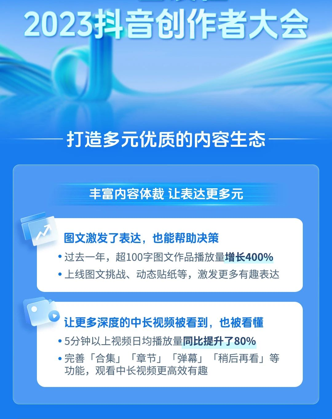 据抖音基础产品负责人吴晓丹介绍,过去一年“图文”类内容已经超过150亿条,超过100字的图文内容增长超过400%。