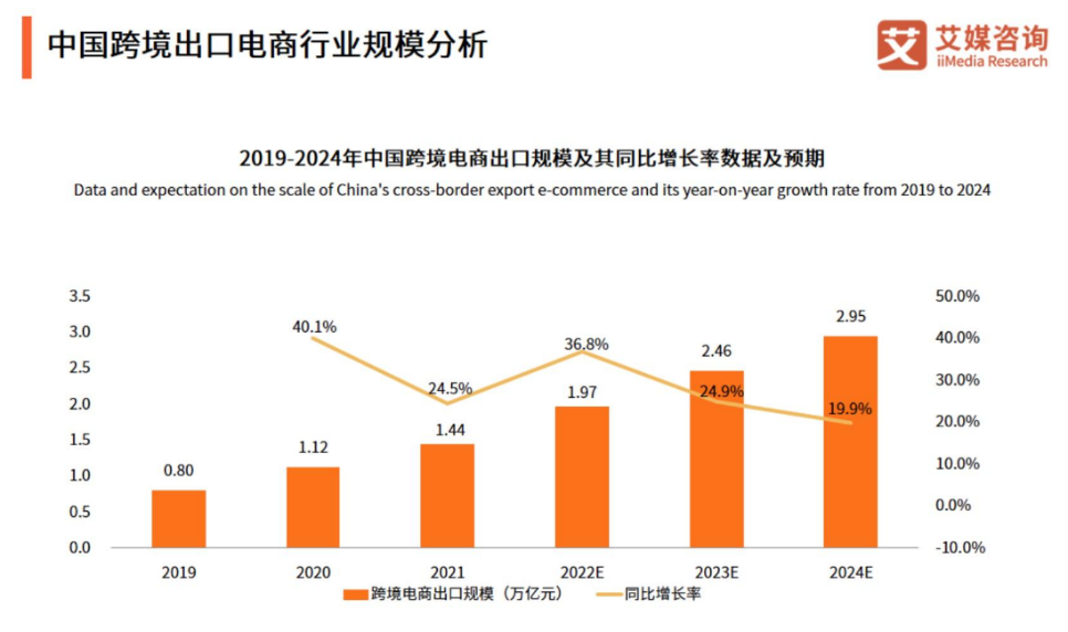 据eMarkeTer的预测,2026年全球电商渗透率有望达24%,市场规模达9.1亿美元。在国内市场面临增长放缓的背景下,不可忽视的是,跨境电商行业借助互联网技术进步实现商品和服务的跨境交易并淡化国际贸易国界,在消费全球化、产业升级转型的浪潮中具备强劲的成长能力。