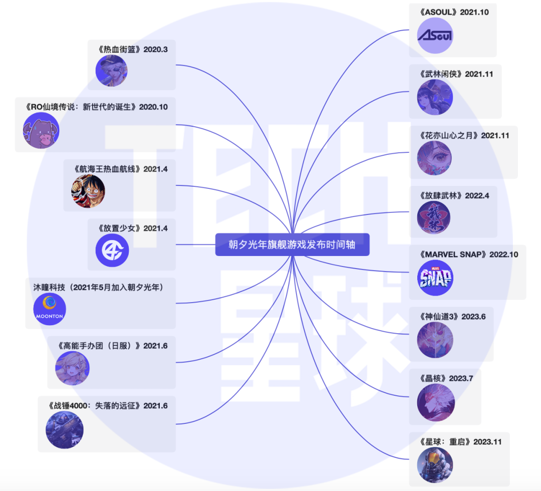 朝夕光年旗舰游戏发布时间轴,Tech星球制图。(数据来源朝夕光年官网及公开资料整理)。