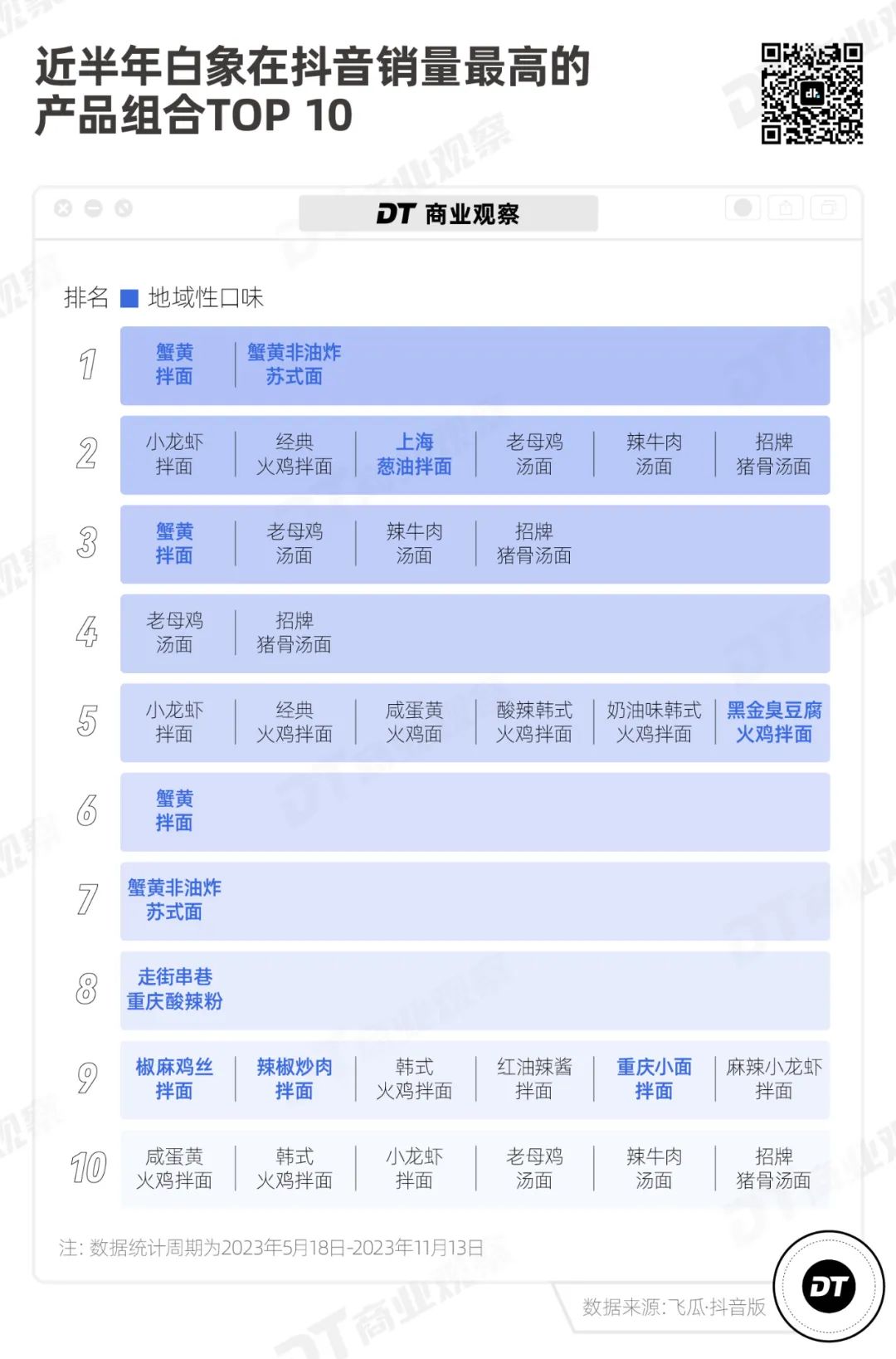 与淘天不同,在抖音上,白象的爆卖产品大多是新品或更小众一些的“地方风味”方便面。