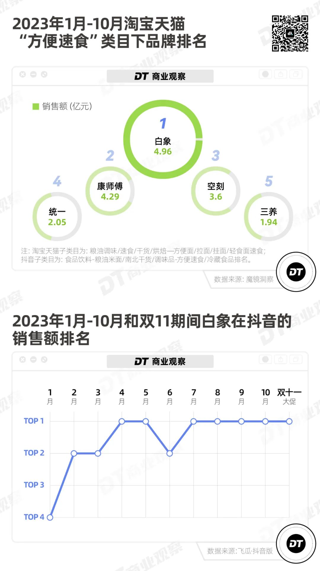今年双11,白象在抖音和淘天都拿到了速食品类下的品牌销售额TOP1。