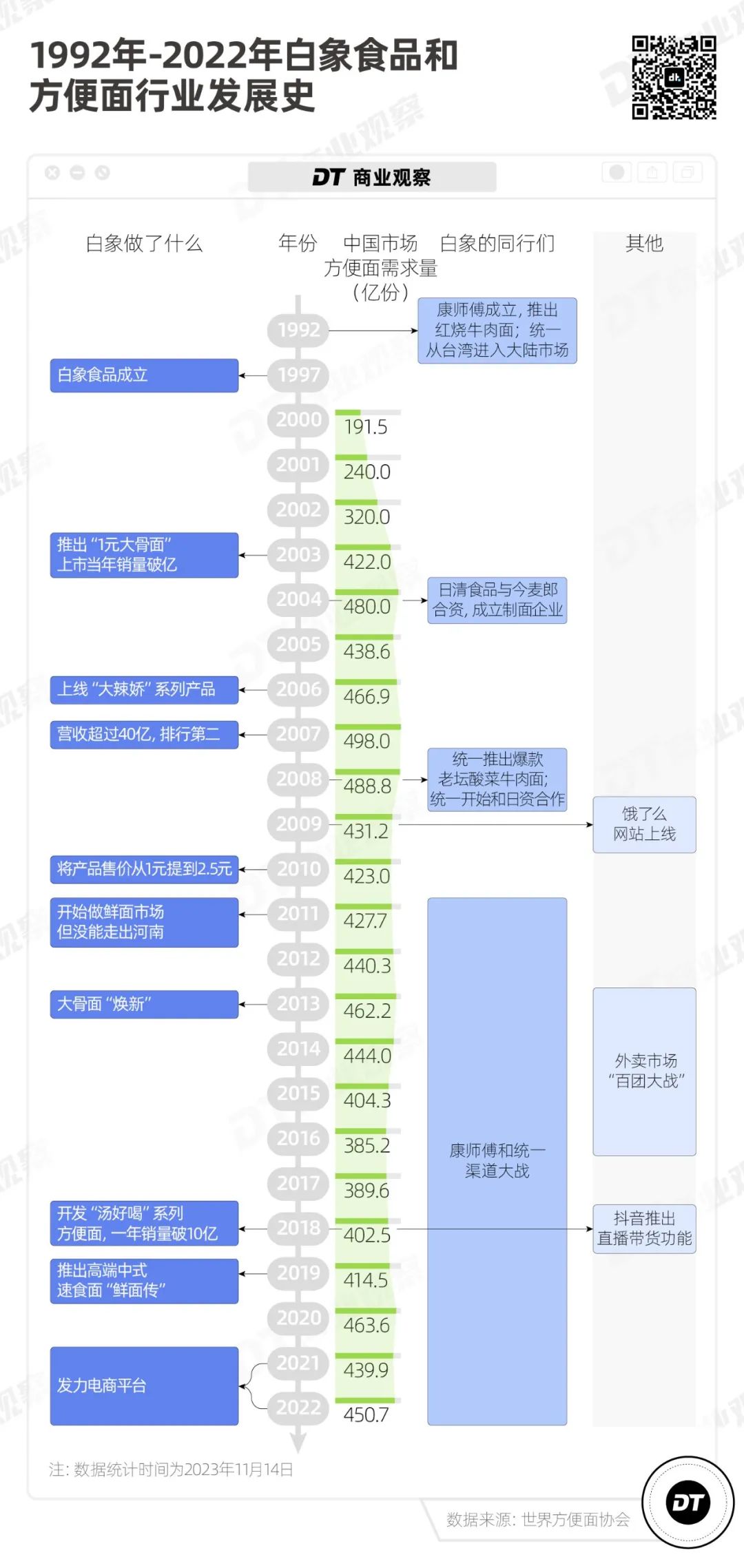 我们整理了1992年到2022年方便面的需求变化以及白象和他的对手们的动作,试图从行业和自身回答“为什么是现在才红?”这个问题。