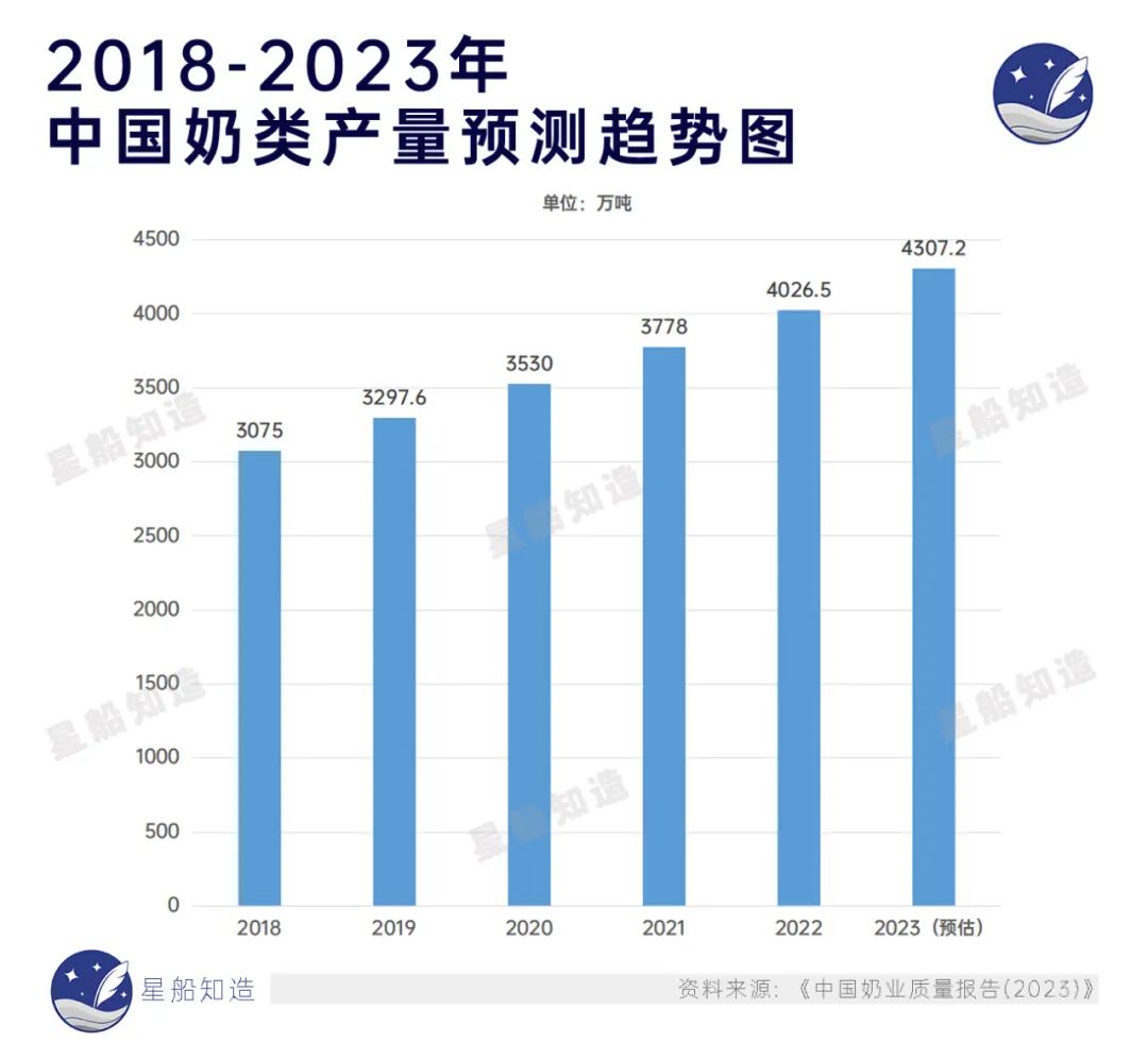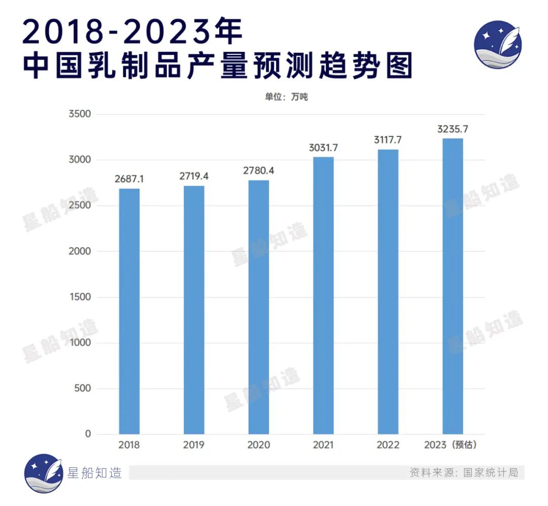 一方面,综合《中国奶业质量报告(2023)》和中商产业研究院等测算的数据:全国奶类产量、乳制品产量正逐年增长