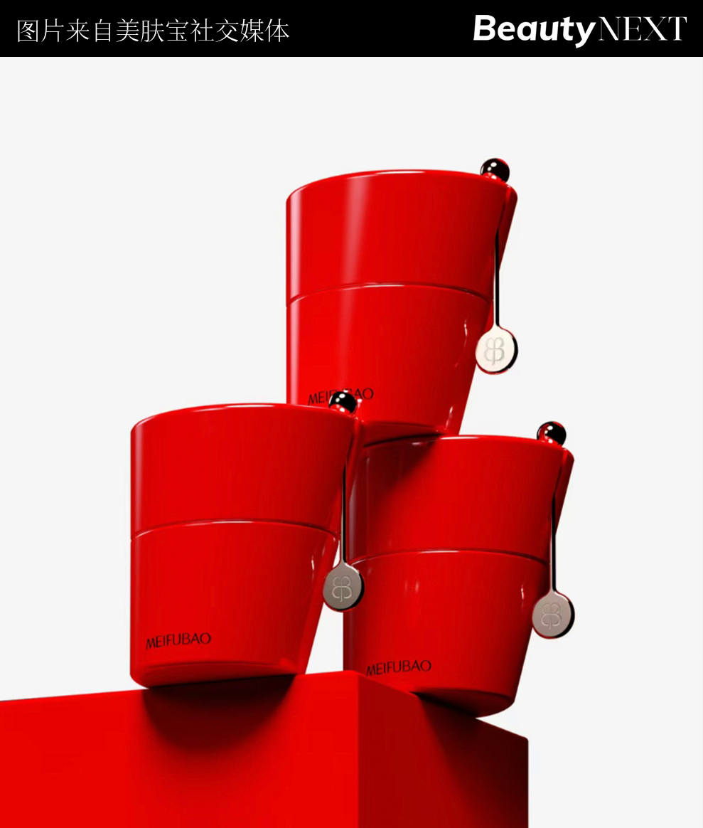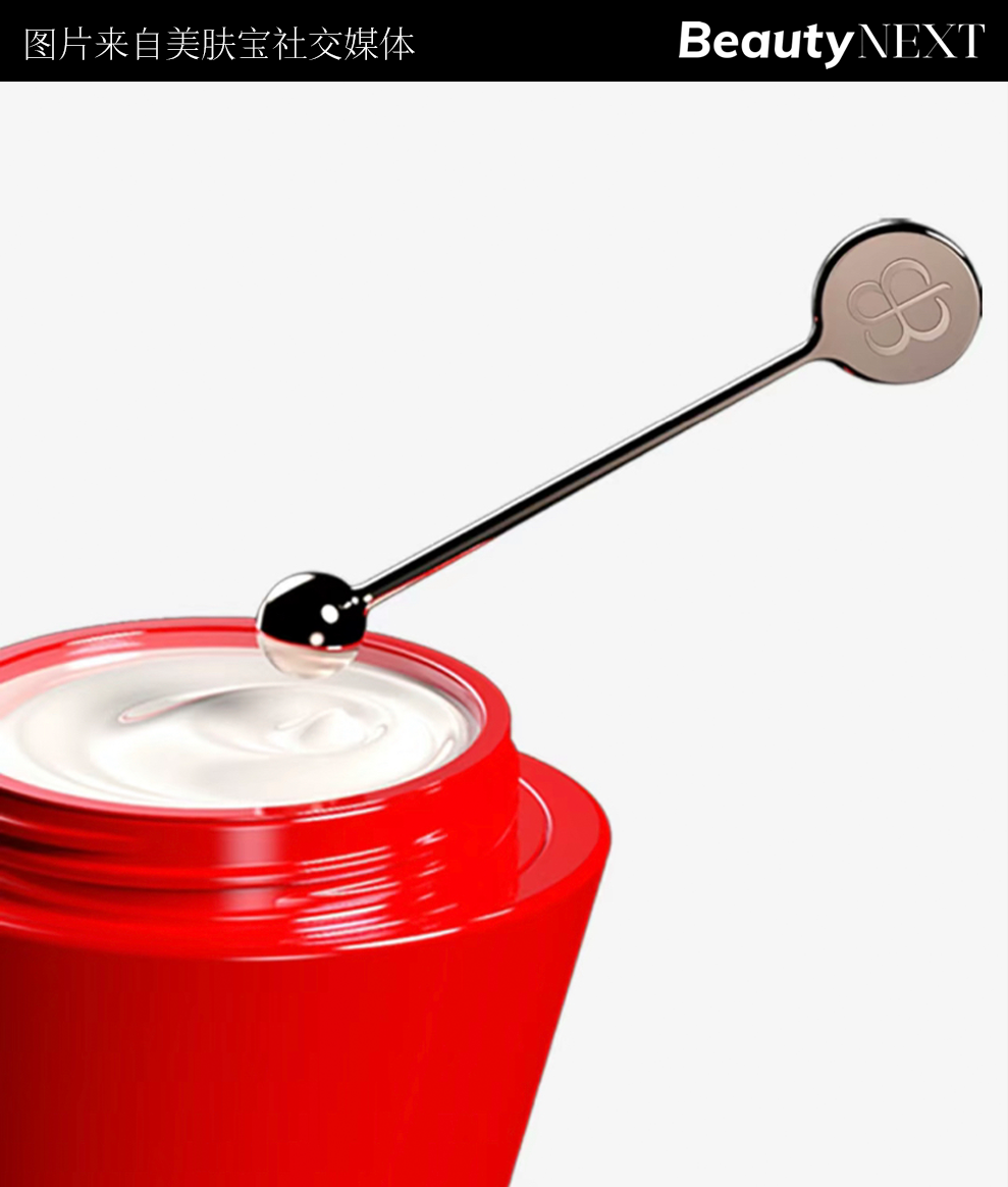 美肤宝的新品则通体运用了品牌的红色,以一种非常规的瓶身线条设计,呼应“反重力”的概念,定制珠棒配上品牌logo,则有一种东方美感与中式韵味。