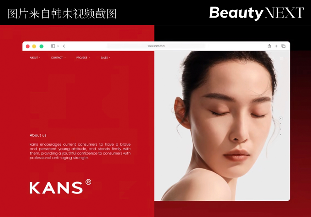 而视觉整体升级的韩束,从品牌发布的视频来看,不论是在品牌logo的调整上、出镜模特的形象上,还是设计语言的元素上,相比以往都展现出一种简约的时尚感。从天猫旗舰店的显示来看,也开始主打“KANS”而非“韩束”。