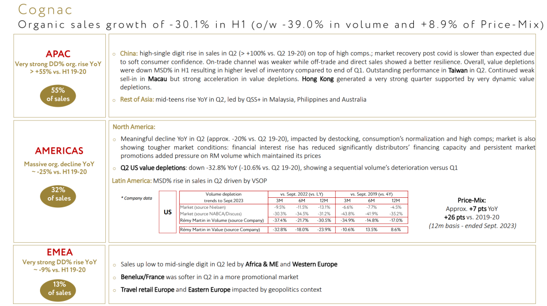 小食代留意到,其中,第二财季,干邑在中国市场录得高个位数销售额增长。不过,“由于消费者信心疲软,新冠疫情后的市场复苏速度慢于预期。”该公司表示。