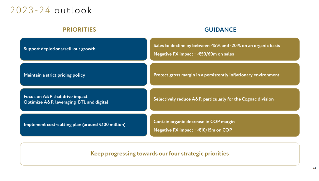 由于对下半年业绩好转的乐观情绪逐步消退,人头马君度下调了全年销售预测。展望2023-24财年全年,该公司预计有机销售额下降15%至20%。