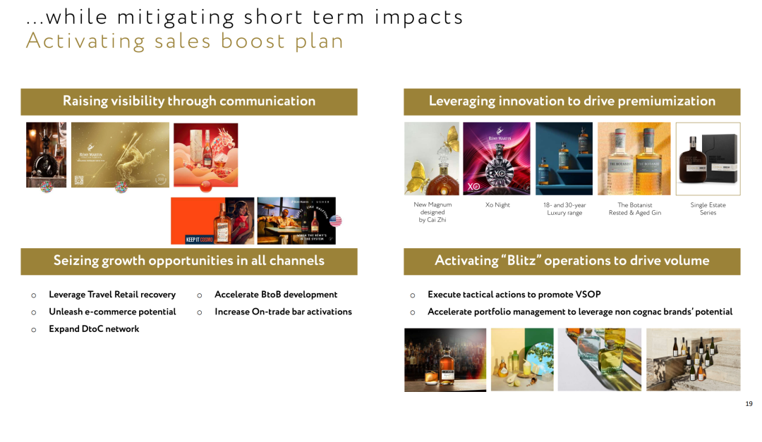 第四,他表示,该公司启动了许多项目来推动销售,包括加速品牌组合管理,来释放非干邑品牌的潜力,以及通过战术行动支持VSOP的销售。
