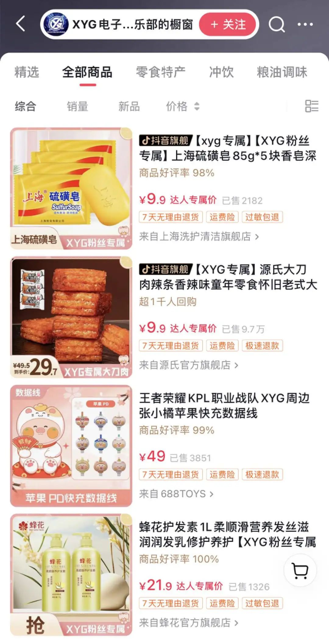 从目前XYG合作的品牌来看,这些产品多为生活日用、零食等通用单品,单价多在10-30元,比较适合游戏直播观众在抖音进行试水消费。