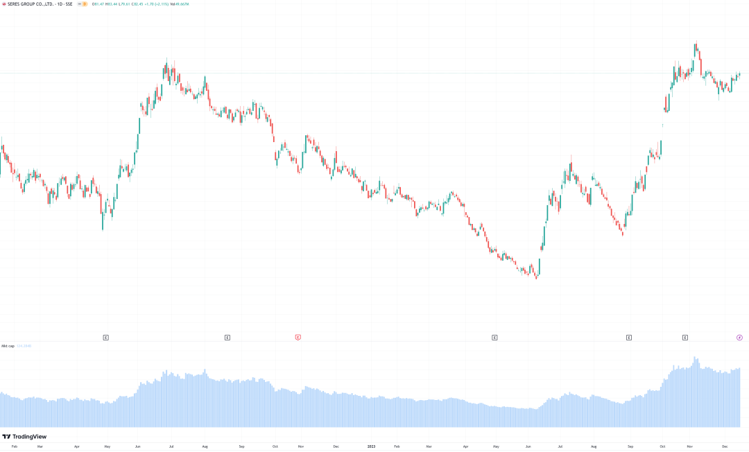 确实,回望过去一年赛力斯在二级市场的表现,尽管问界系列没有火爆,但已然对赛力斯的股价影响巨大。