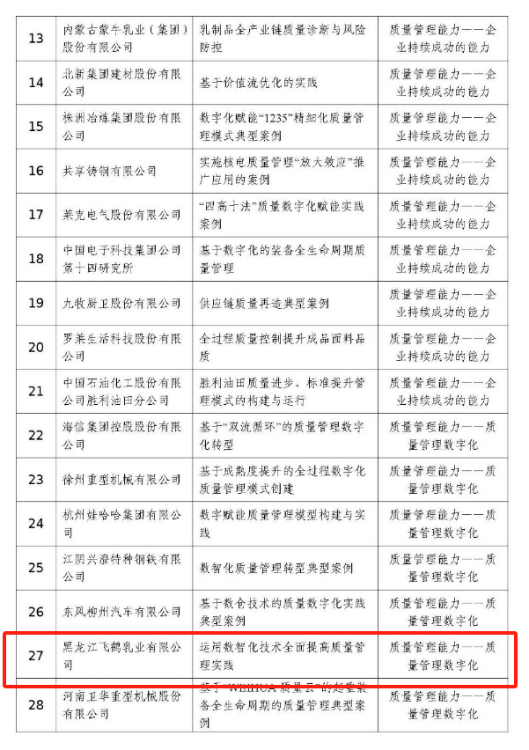 以数字化促进食品质量提升事关国民餐桌。《中国制造2025》强调要促进制造业数字化、网络化、智能化,走创新驱动的发展道路;“健康中国2030”强调,科技创新将为提高健康水平提供有力支撑。本次入选,飞鹤为企业进一步加强食品安全风险监测评估,以及民营企业在中国式现代化进程中加速数字化转型提供了参考样本。
