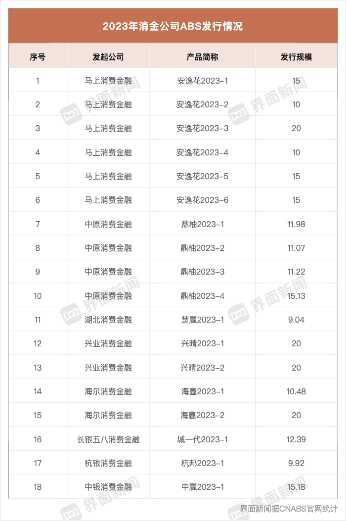 2023年,消费金融公司在多重利好政策的刺激下,资产证券化产品(下称“ABS”)发行提速,发行规模远超2022年。
