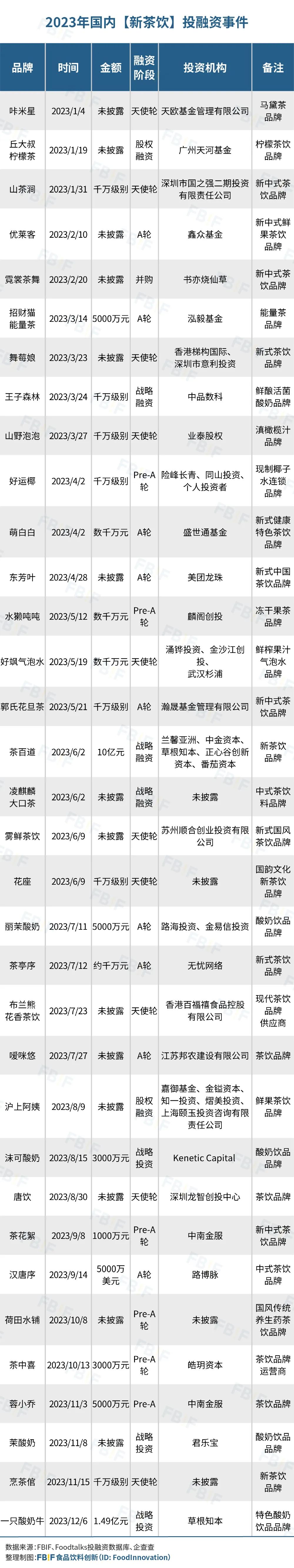 2023年,新茶饮依然备受资本追捧,仍然是食品行业投融资里最受欢迎的品类之一。
