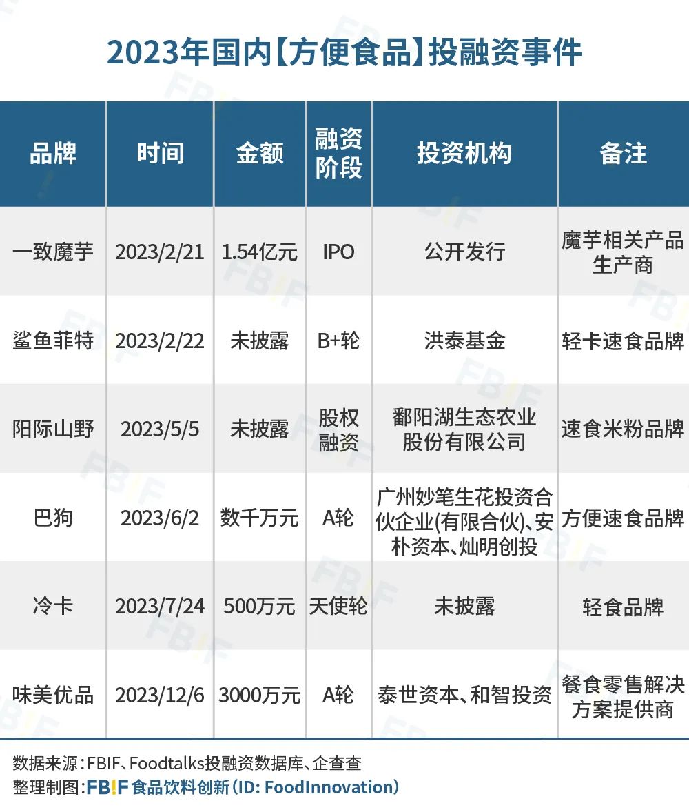 另外,方便食品也呈现“健康”“减卡”趋势,今年6起融资中,有3起与轻食、低卡速食有关,分别为冷卡、鲨鱼菲特、一致魔芋。