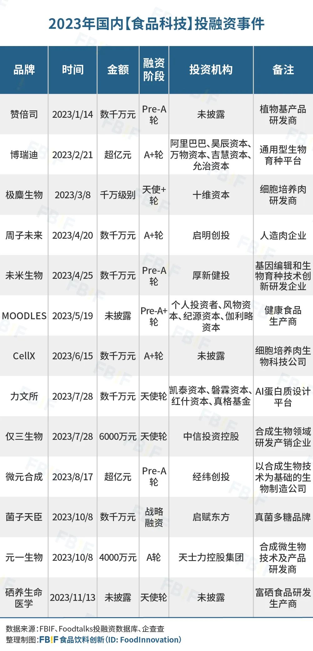 2023年,共有14家食品科技公司拿到了新一笔投融资,且每一起融资额均在千万元人民币以上。这些企业有一个共同的特征是,成立时间不长,且处于早期融资阶段。