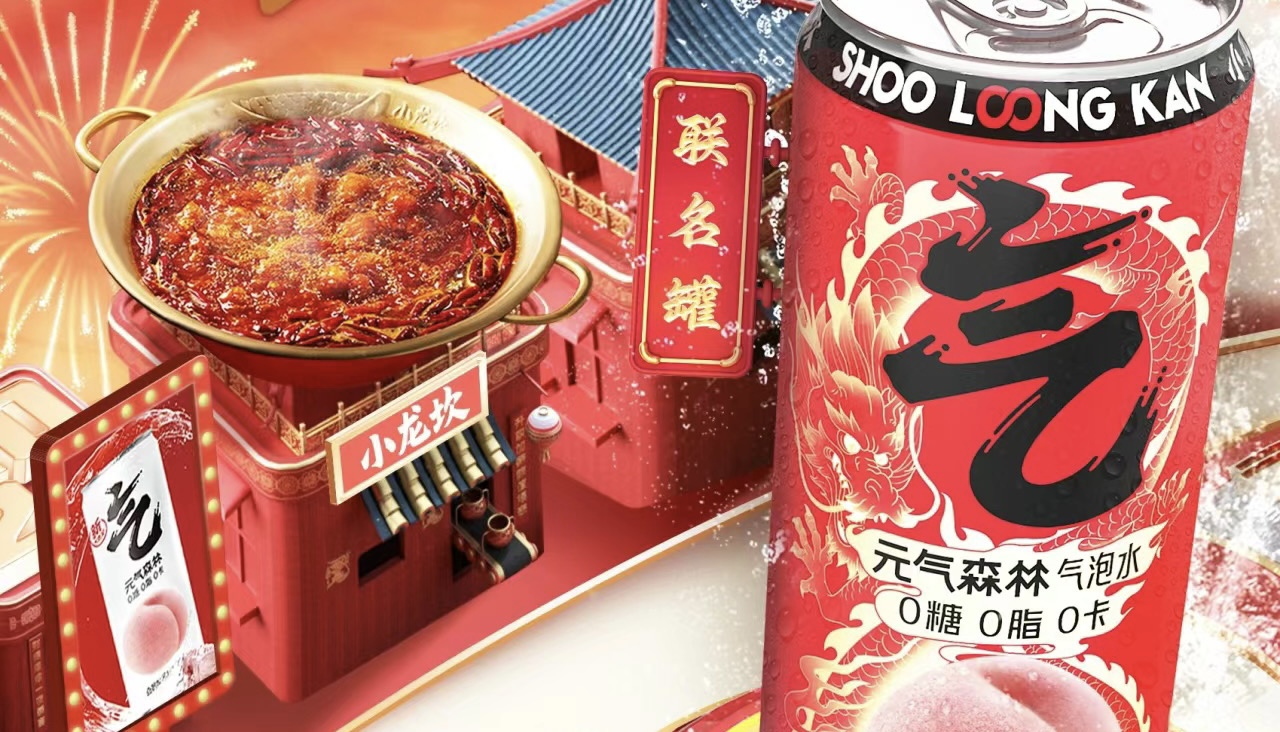 元气森林2024年首批大张旗鼓的联名活动对象是一家火锅店——它和小龙坎程成都春熙路太古里店合作推出了一间主题店,并持续至2024年1月14日。