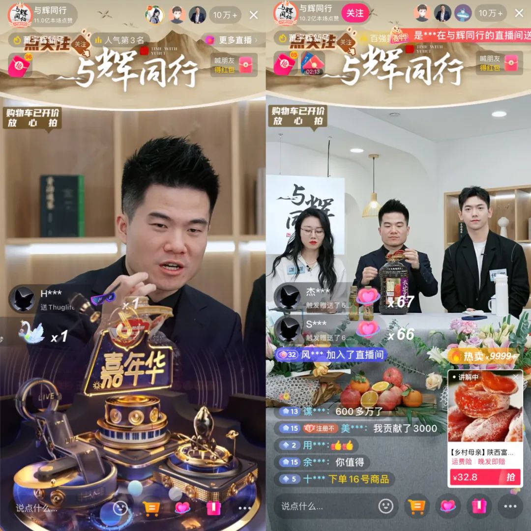 飞瓜数据显示,@与辉同行这场直播的观看人次高达5431.4w,直播2小时销售额即达到1亿+,成为当晚抖音直播带货总榜的TOP1。该场直播还让@与辉同行账号涨粉275.6w,截至发稿,@与辉同行的粉丝量为772.3w。