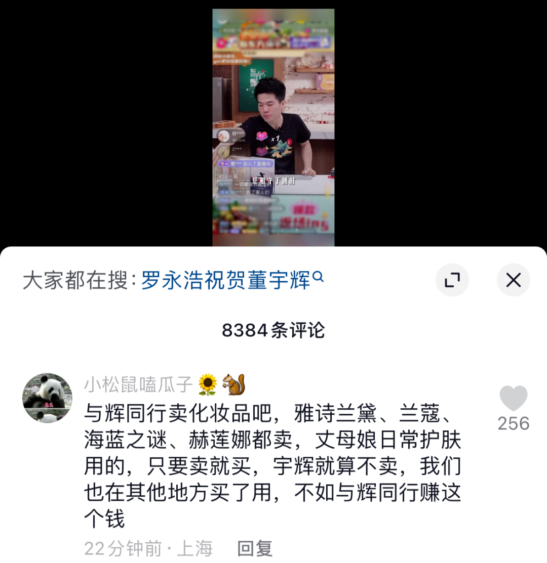值得注意的是,@与辉同行在昨晚的直播中并未上架化妆品,董宇辉还做出回应称其不擅长此类带货。但在今天@与辉同行更新的一则视频中,仍有一个热评是建议与辉同行卖化妆品,原因是与其个人粉丝群体的需求比较匹配。