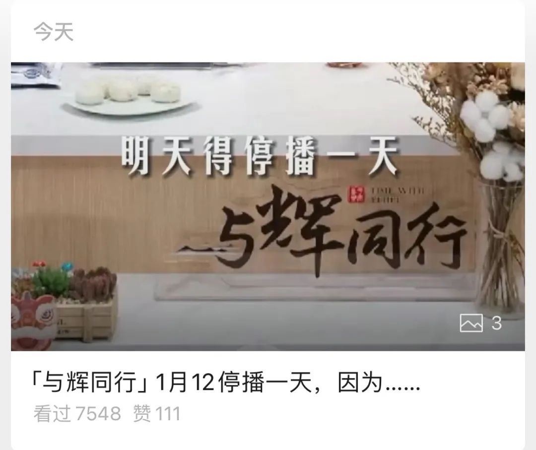 “丈母娘”把与辉同行直播间买空了。1月12日,与辉同行公众号发文称,停播一天,因为没东西卖了。