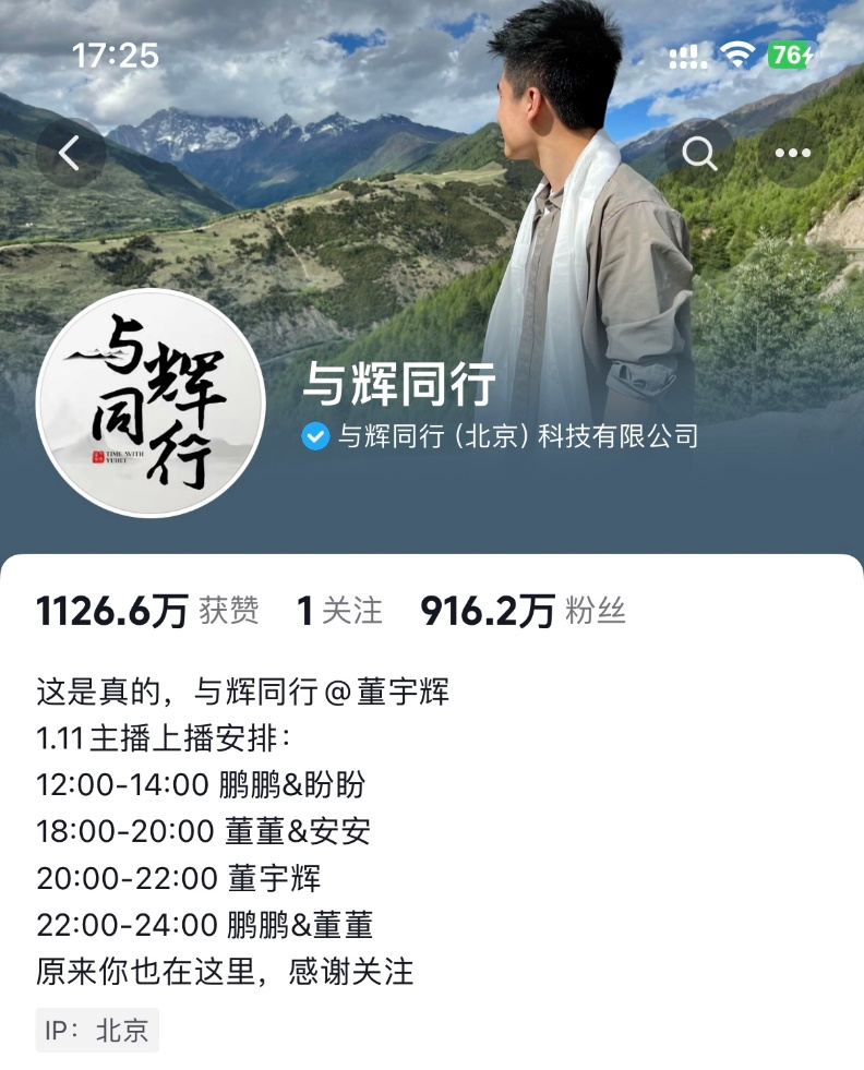 与辉同行目前的账号简介中也写明了各个主播的上播时间,其中董宇辉仅在20点至22点上播,其余时段中,鹏鹏和盼盼在12点至14点上播,董董和安安在18点至20点上播,鹏鹏和董董在22点至24点上播。黄金时段仍然在董宇辉手上,但这个账号的成立,显然不是为了“与辉独行”,扶持更多新人成长才是俞敏洪为董宇辉成立个人工作室的更大目的。