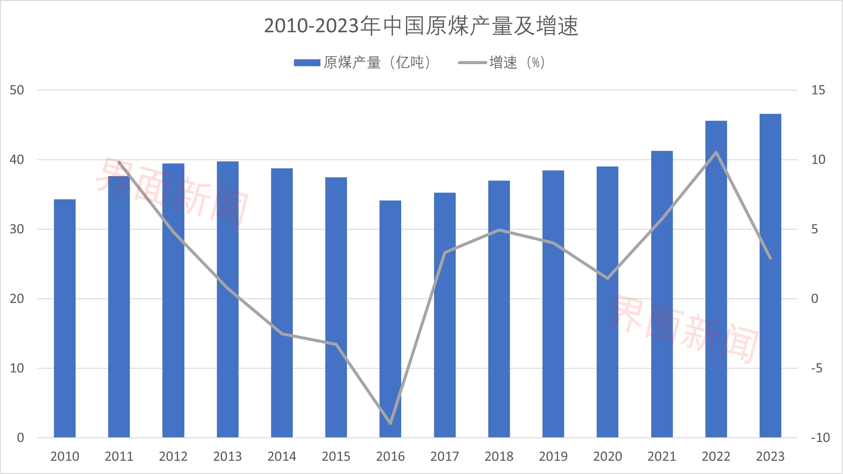 尽管2023年原煤产量继续上升,但增速有所下降,仅为2.9%,低于2022年10.5%和2021年的5.7%。